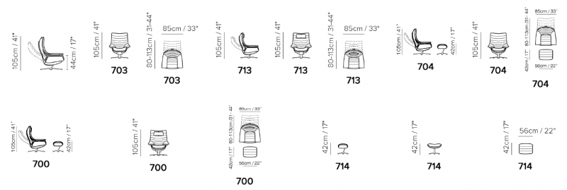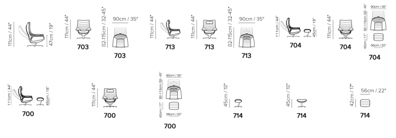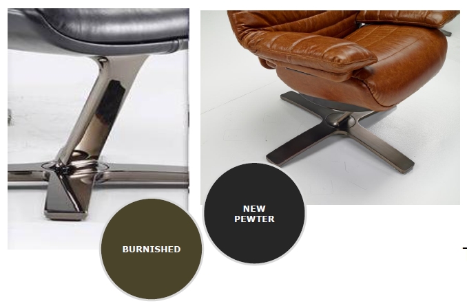 Podstawa fotela dostępna w czterech standardowych kolorach: biały mat, czarny mat, brązowy mat