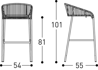 Hoker o wymiarach: 54 x 55 x 81/101 h
