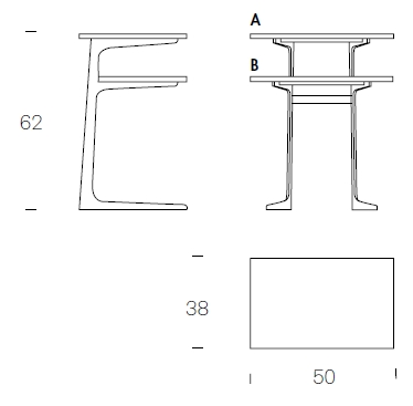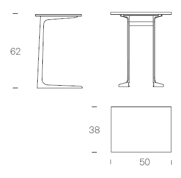 50 x 38 x 62 h (dwa blaty)